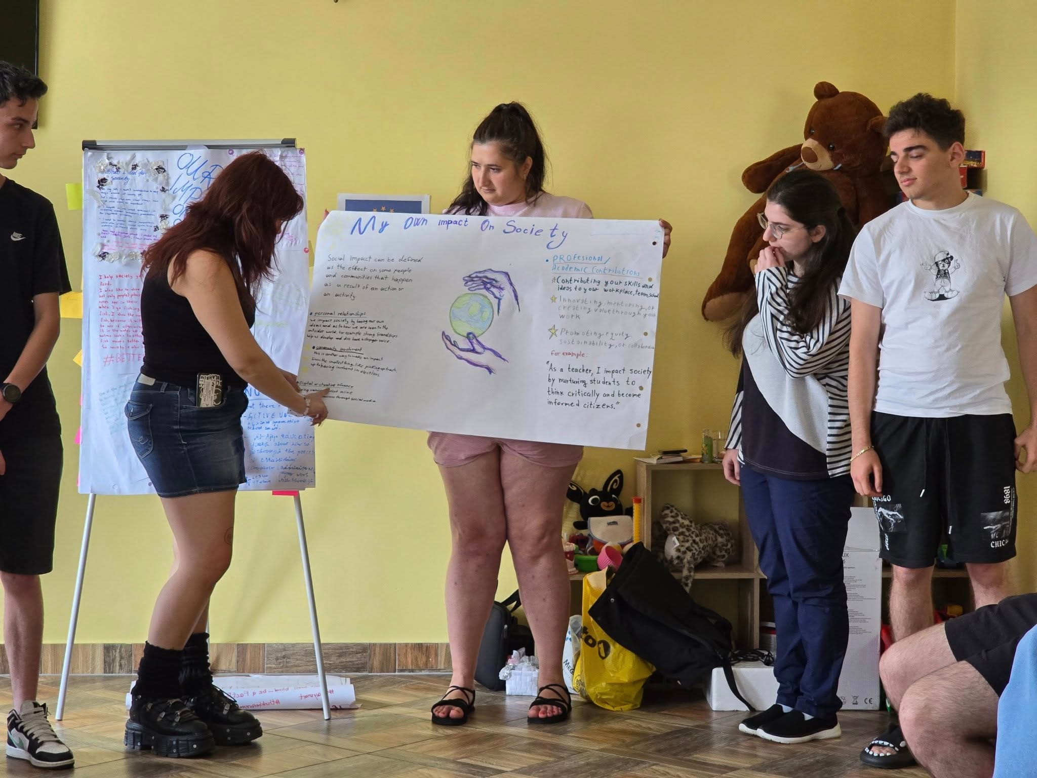 Jednym z ważnych elementów programu było przygotowanie prezentacji dotyczących społecznego wpływu młodzieży oraz utworzenie cyfrowej mapy rozwoju w oparciu o analizę SWOT.